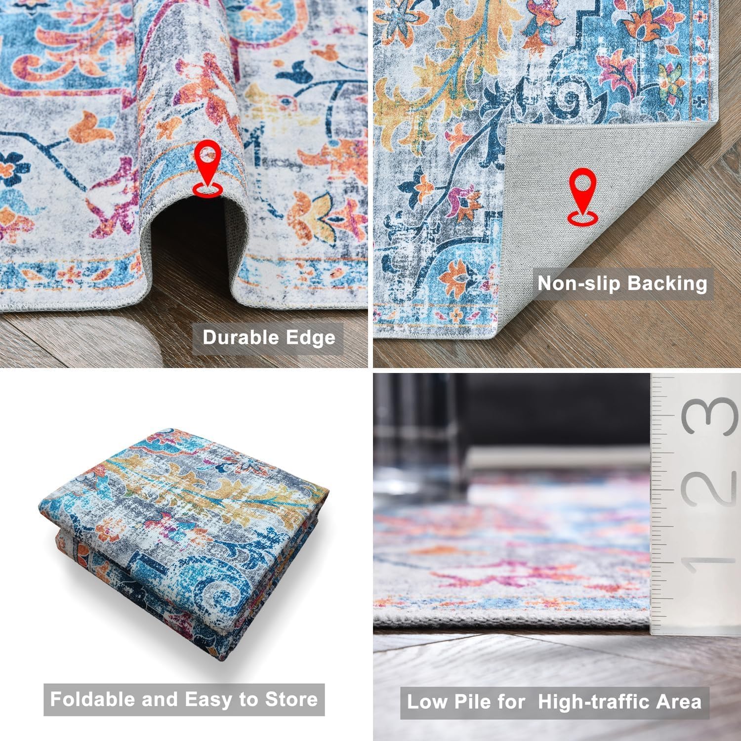 ✨ Stain-Resistant and Easy to Clean: The living room rug crafted from durable polyester, our rugs are stain-resistant and easy to maintain. The low pile height ensures a comfortable walking surface while remaining lightweight and manageable for pets and children....