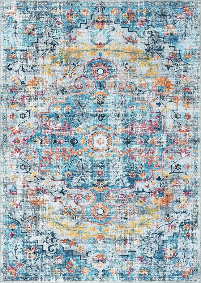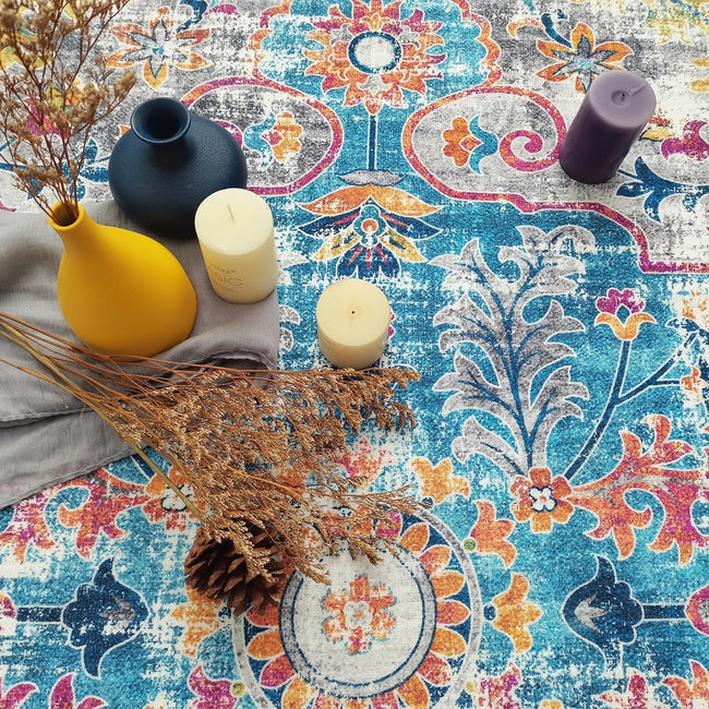 Mandala Machine Washable Area Rug - Non-Slip & Safe Floor Rug - Stain Resistant Bedroom Rug - Comfortable Polyester Material Colorful Rug - Durable Modern Rug for Living Room - Living Room Rugs