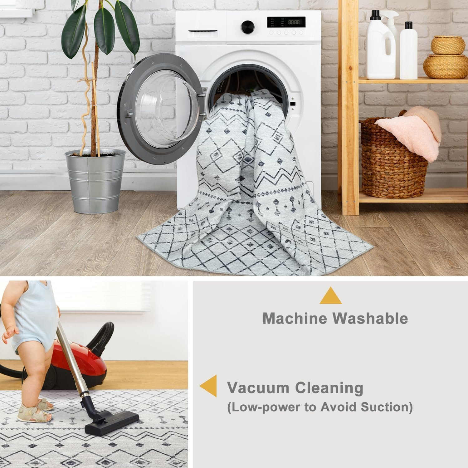 - 🐾 Pet and Family-Friendly: Our machine modern rug is designed with busy households in mind, making them perfect for homes with pets, children, or messy eaters. Say goodbye to worrying about spills or accidents ruining your rug – simply toss it in the wash for easy cleaning.